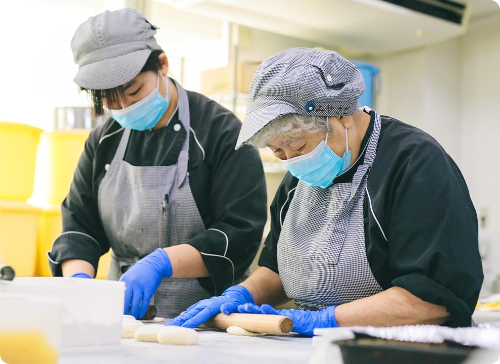 四日市福祉会は、障がい者の方を積極的に雇用し、現在は8%を超える障害者雇用率を実現しています。そのほかにも若年層を中心に、生活保護受給者の方や精神的な理由により一般の企業では働くことが難しい方、引きこもりだった方などの受け入れを各事業所で行っています。長期で安定して働くことを目標に、ご自身のペースで働くことができるような環境を整えています。
