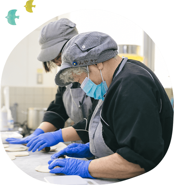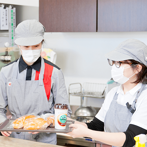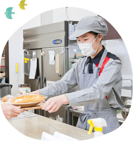ベーカリーショップではパン作りだけでなく接客を行うなど、地域の中で作業訓練を行うことによって利用者の方が自立を目指すだけでなく、地域社会に貢献しています。