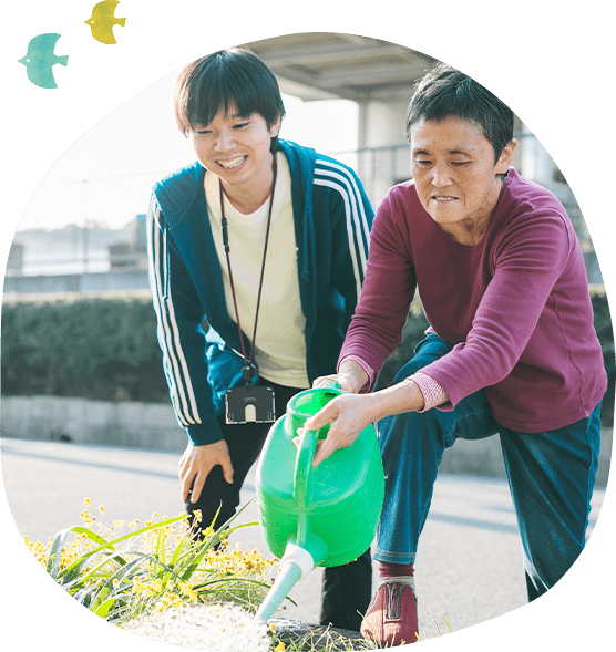 お子様の障がいや特性に合わせた学習課題や地域清掃、お花の水やりなどのお手伝いを行うほか、生活介護の利用者の方や職員と一緒に遊ぶなど、放課後がお子様にとって充実した時間となるよう過ごし方を提案しています。また、帰りの送迎も実施しています。