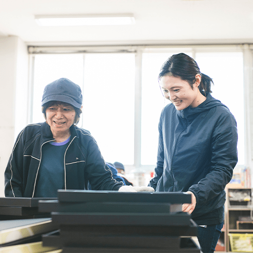 地域の方と接する機会が多く、障がい者の方が働く姿を目にしてもらうことができるため、一般の方の障がいに対する理解促進に繋がると思います。個別の支援や職業指導だけではない人との関わりを「グループワーク」を通して学べるよう工夫し、常に複数の職員で連携・協力しながら、利用者の方が主体的に働ける環境づくりを意識して支援を行っています。