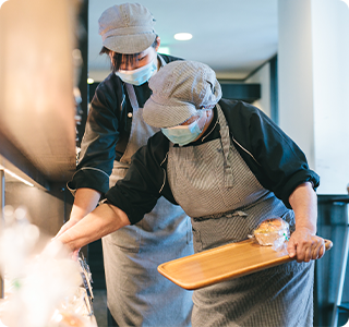 地域で行われる餅つき大会や盆踊り、防災訓練など、地域のイベントには職員だけでなく利用者の方も運営ボランティアスタッフとして毎年参画しています。また、四日市福祉会が運営するパン屋「Bakery Shop Blooming」「ぱんカフェblooming」やガソリンスタンド「ブルーミング阿倉川SS」などの店舗においても利用者の方が接客を行うなど、地域の一員として活躍しています。